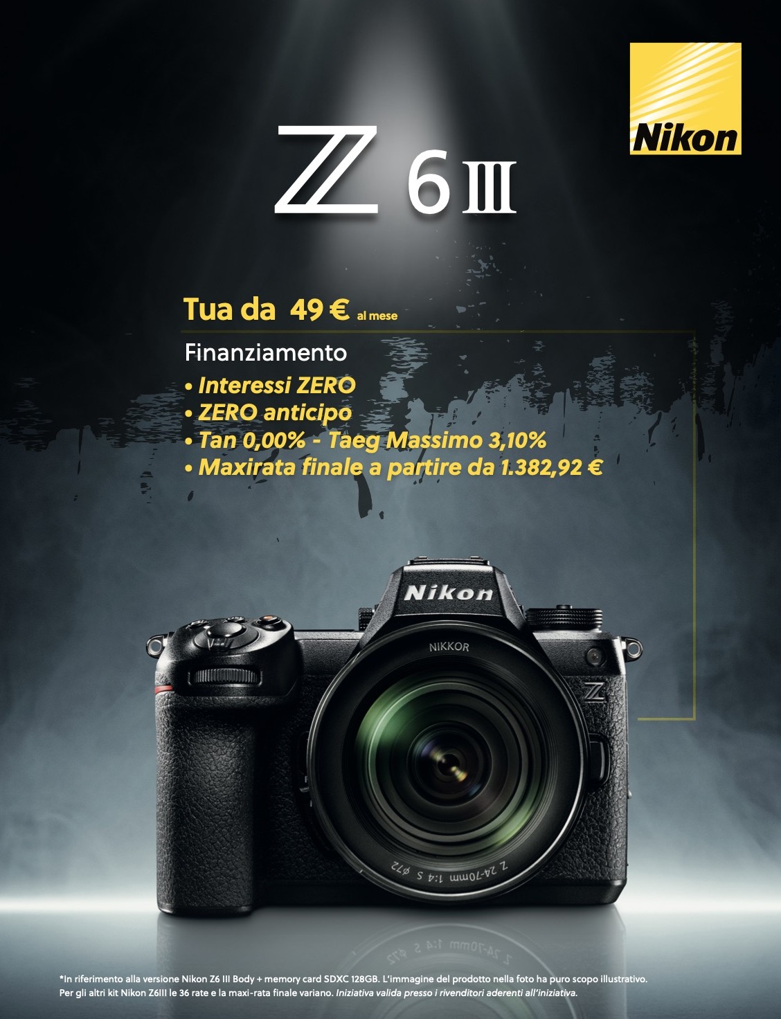 Acquistando una Nikon ZR (versione Body o Kit con NIKKOR Z 24–70 f/4 S) insieme ad almeno 150€ di accessori*, riceverai 150€ di Cashback immediato sotto forma di sconto in cassa.