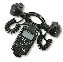 Questa unità flash flessibile a doppia testa offre la regolazione separata dell'angolo di illuminazione (angolo di inclinazione: 45o al di sopra - 45o al di sotto, 60o verso l'interno - 30o verso l'esterno; angolo del braccio: 50o al di sopra - 30o al di sotto), controllo dell'illuminazione (1:8 - 8:1, 13 incrementi da 1/2 step) e funzionalità di illuminazione con testa singola. Supporta anche varie funzioni, come la sincronizzazione ad alta velocità, il blocco FE e il flash d'effetto, e può fungere da unità principale per il controllo delle unità secondari.